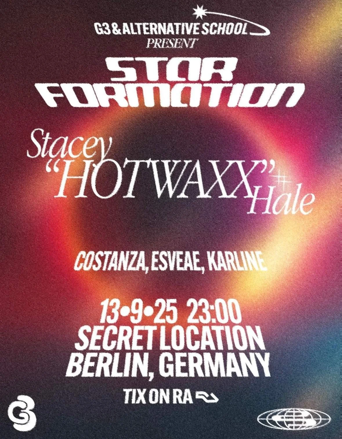 Berlin comes alive with Star Formation, headlined by Detroit icon and Godmother of House, Stacey "Hotwaxx" Hale. From 1970s Detroit's disco and queer clubs to Studio 54 and the global stage, Hale has blazed a trail as one of dance music's true pioneers. Costanza, Esveae, and Alkarline build the energy with their distinctive Berlin grooves, while G3 and Alternate School present this celebration of house music's past, present, and powerful community. The location is unannounced so stay tuned for coordinates!