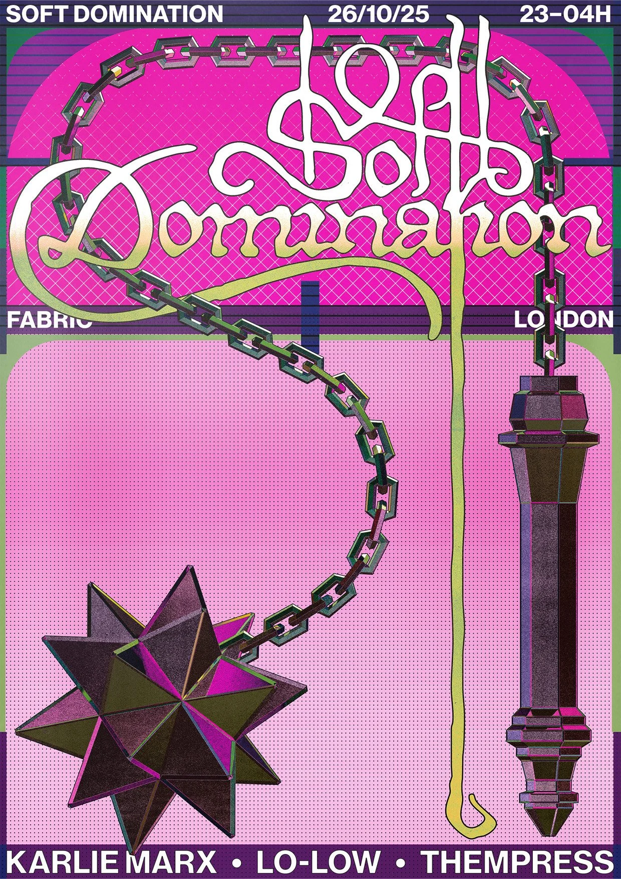 LO-LOW launches her new event concept at Fabric, materialising a figment of her imagination that's been floating around for years. Inspired by fetish and kink photography, Soft Domination encapsulates her obsession with juxtaposition—soft and hard elements colliding in fashion, music, and everything in between. The spirited London-born DJ, who coins herself as a "techno genre fluid warrior," is making techno purists uncomfortable while keeping audiences on their toes. From warming up for DVS1 and Floorplan to her Boiler Room debut and Pxssy Palace main stage appearance at Maiden Voyage, LO-LOW is here for a soft and long time. This is just the beginning of her [soft] world domination…
