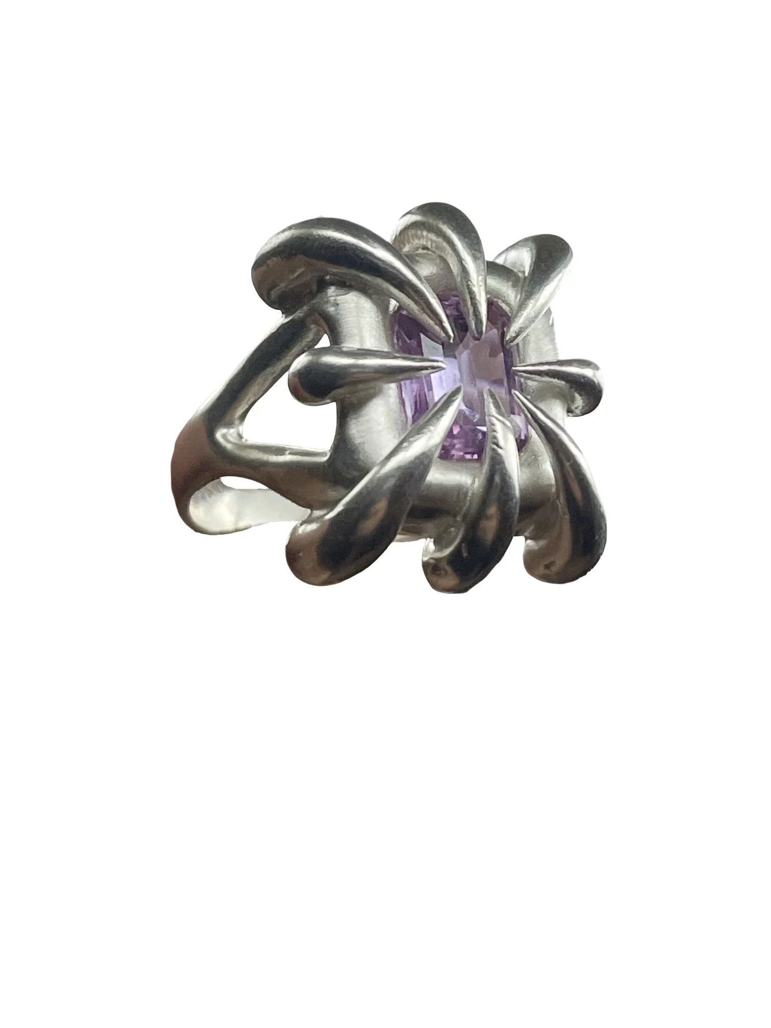 Handmade in Edy Bridges' Berlin studio, this electric blue glass ear cuff features silver droplets with a chrome effect. The cuff is shaped by heating glass and forming it with lead tools. Silver-speckled glass is added, creating a metallic glaze as it reacts in the oxidising flame — resulting in a blue-metallic chrome shine. The finish is a mix of bright blue and soft silver.